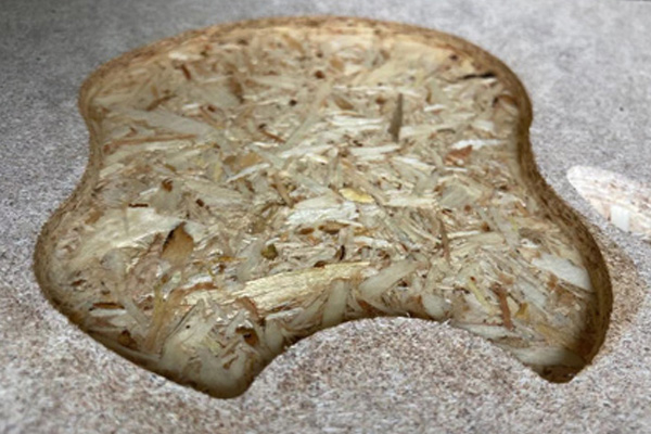禾香板,是以各種枝芽、小徑木、速生材、木屑等為原料,經(jīng)切割而成的一種人造板。形成一定規(guī)格的碎片,經(jīng)過干燥,與橡膠、硬化劑、防水劑等混合。在一定的溫度和壓力下壓制而成,顆粒排列不均勻。